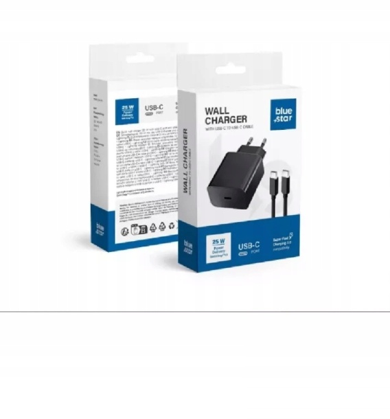 Ładowarka sieciowa do telefonu Blue Star USB C QC4.0 PD 3A 25W + kabel USB C do USB C TFB-TC-25WPD czarna